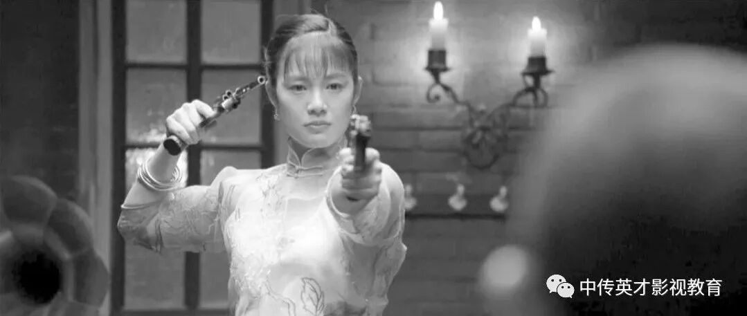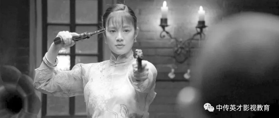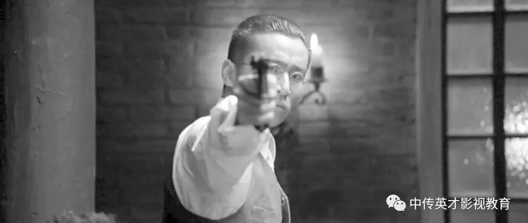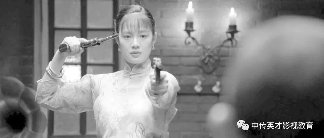 这段场景以花姐左手举枪指自己的头,右手端枪指向大哥张麻子起头,花姐先看着大哥(镜头1),拿枪的姿势保持不变,又瞟了一眼老三说(镜头2):“老二不辞而别,老三又要走了,我们活活地被你们拆散了!”后面接大哥的镜头,大哥也转头看老三(镜头3),既然花姐和大哥都在看老三,后面就自然而然地接上老三的镜头(镜头4)。老三在看花姐,镜头又转向花姐(镜头5)。花姐持枪看着大哥,老四、老五和老七都站在老大身后,于是接老四和老五拿枪指着花姐(镜头6),老七也举枪指着花姐(镜头7),这个仍然属于由花姐的主观视线调动的镜头组接。接下来(镜头8)切师爷冲着花姐说:“女侠,你是为了老二还是为了老三?”师爷的主观视线将镜头调动回到花姐身上(镜头9),花姐右手拿枪指着师爷喊了一声“闭嘴!”接着是师爷赶紧拿手捂嘴(镜头10),但眼睛还是在看花姐。镜头切换回花姐,依旧保持着开始的持枪姿势看着大哥(镜头11),然后接的是大哥开始说话(镜头12)。