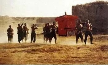 这四个场景无论从画面还是声音,或者画面与声音结合起来的视听效果来说,都极具冲击力。其中的三个场景是三组汉子们的群像。有意思的是,三个场景中为三组汉子们塑造的群像,都是在放声嚎歌, 它们在整个影片中至关重要, 奠定了片子粗犷豪放的风格。
