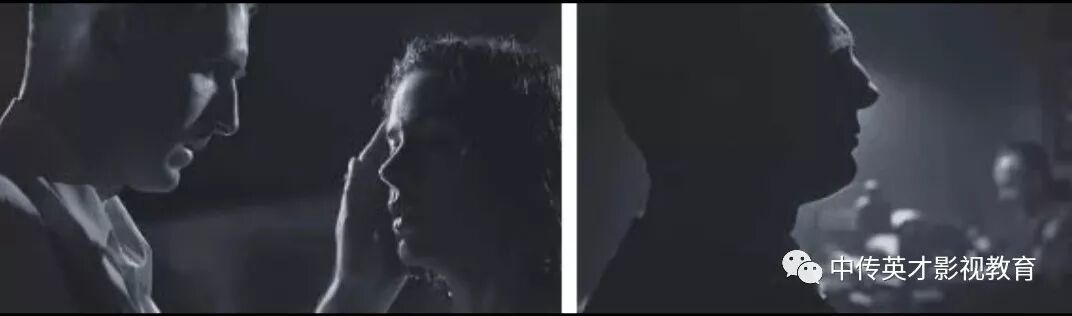 (3)轮廓光:轮廓光是指影视画面中用于勾画物体(人物)外部轮廓的用光方式。逆光是勾画表达对象轮廓的不二选择。逆光的运用可以起到三方面的作用:一是将物体或人物与背景分离。如图16所示,若没有使用轮廓光,人物将和背景紧贴在一起,影视画面的表现力将不复存在;二是可刻画人物性格特点,图16中正是在左右两边侧逆光作用下,将纳粹军官阿蒙葛斯的冷酷和犹太女孩海伦的惊恐精准地刻画了出来;三是通过轮廓光展现影视画面的空间纵深。如图17所示,在逆光的作用下辛德勒的脸部轮廓得到了很好地强调,明晰的轮廓线将人物向外推动,从而拉大了与背景的距离,使画面空间纵深得以加强。