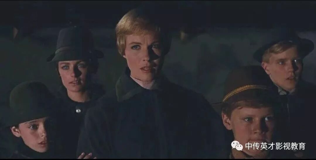 (2)我们将太阳升起与地平面呈15°角到75°角之间的时段称为上午(见图4)。上午的光照特点为:物体表面照度较大,光线亮度较高且色温比较稳定,物体的块面和调子都很清楚,体积感强,质感好,景物层次分明,是影视作品创作中自然光照下拍摄的主要时段。如影片《音乐之声》中的下列两个场景,图5所呈现的时间段应为上午,因为空气中的介质较多;图6所呈现的时间段应为下午,因为空气中的介质较少。