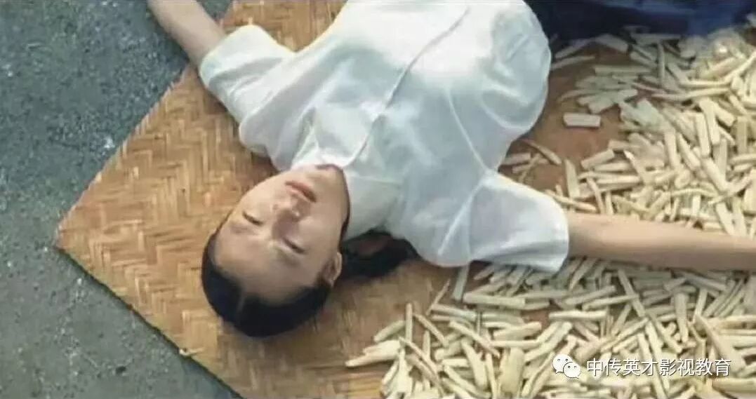 顺光照明是影视作品创作中最常见的布光方式。顺光能使被拍摄对象受光均匀,画面明亮,可以消除物体表面纹理及凹凸感。但顺光照明会削弱对物体体积感及质感的表现力,不利于空间纵深的表达。图1-37为影片《孔雀》中女主角躺在楼顶看伞兵们跳伞的场景,顺光的运用使画面中一切物体皆清晰可见,人物投影被极度压缩,画面空间感与体积感较差。