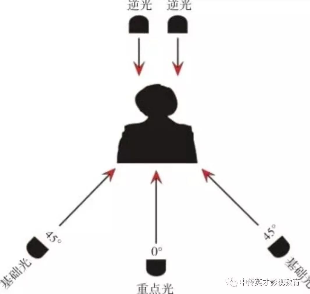 由于现代演播室多采用柔光灯布光,而它的有效投射距离一般不超过3米,因此,无论是基础光或是逆光,一定要保证灯与人的距离不超过3米。